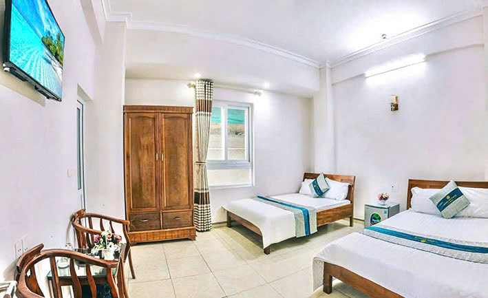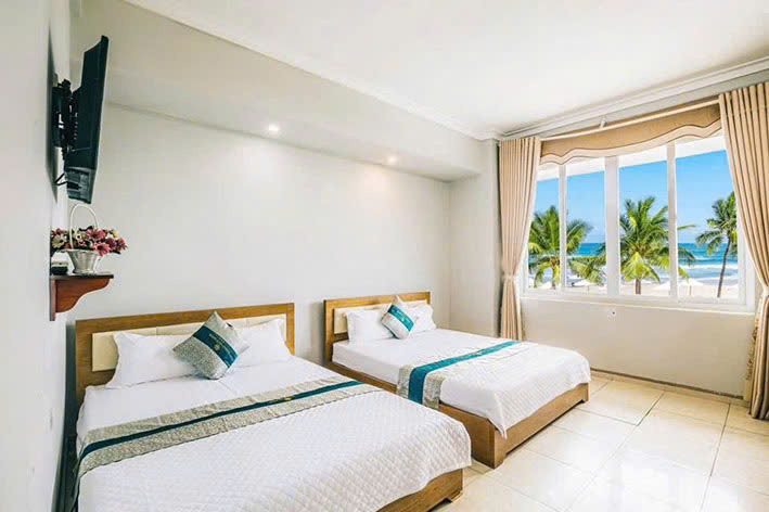 Mỗi phòng có diện tích rộng khoảng 18-25 m2 được trang bị 02 giường 1m5x2m phủ chăn ga gối nệm cao cấp, được thay mới hằng ngày. Nhằm mang lại cho du khách một cảm giác thoải mái nhất như chính ngôi nhà thứ 2 của mình.