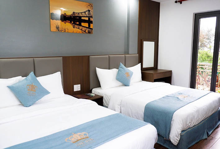Khách sạn có quy mô 40 phòng nghỉ, với hai loại phòng chủ yếu: 20 phòng có hướng nhìn ra biển và 20 phòng hướng phố. Mỗi phòng đều được trang bị đầy đủ tiện nghi như Tivi màn hình phẳng, truyền hình cáp, tủ lạnh, quạt mát, điều hòa, bàn ghế trang điểm và uống nước làm từ chất liệu gỗ tự nhiên. Giúp không gian trở nên ấm cúng và sang trọng. Đặc biệt, các phòng đều có ban công riêng biệt. Mang đến cảm giác thoáng mát, dễ chịu và tận hưởng không khí biển tuyệt vời.